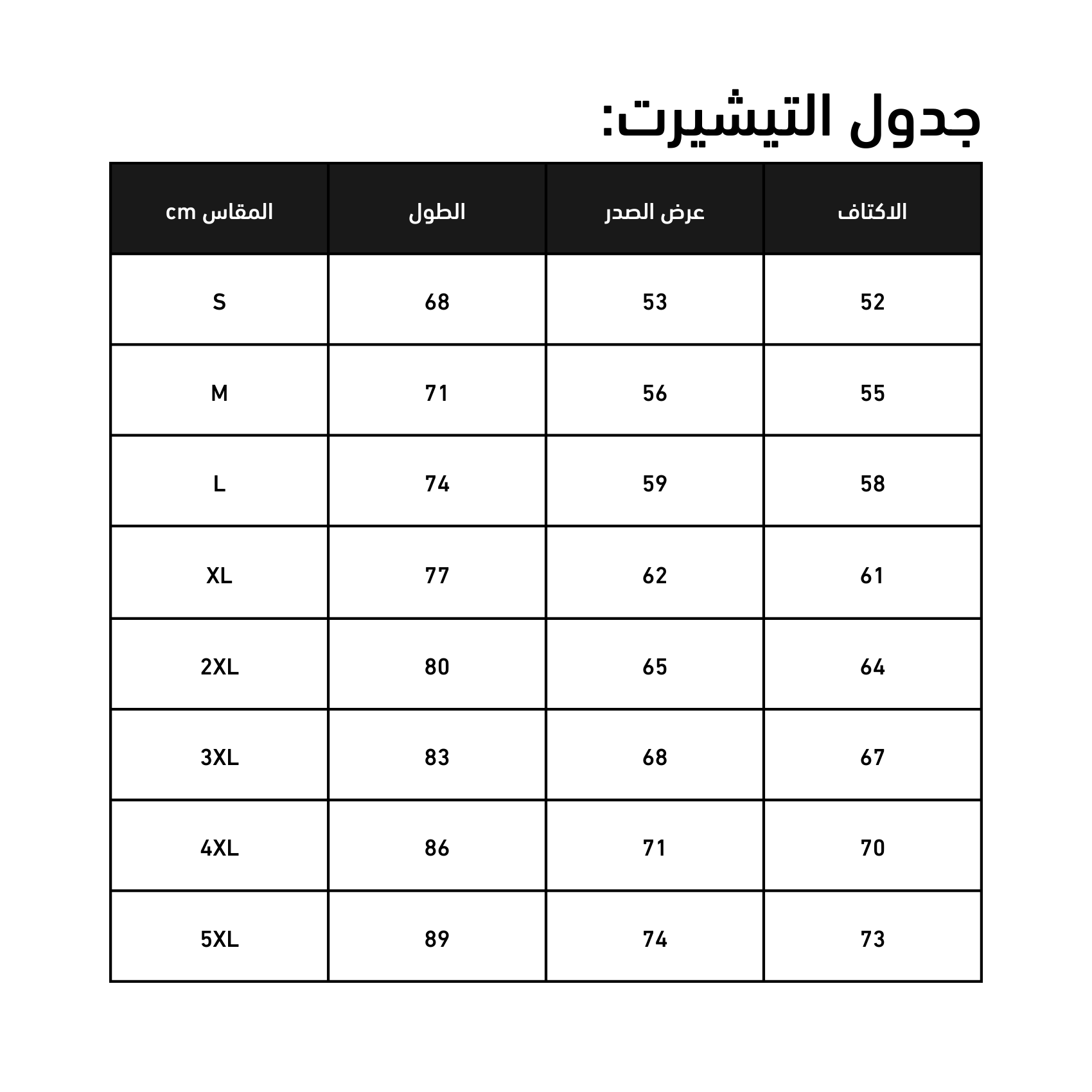 ملاحظة: جميع التيشيرت والهودي بمقاس اوڤرسايز (مقاس اكبر من المعتاد) هذا هو السبب في شعورك ان المقاسات اكبر من المعتاد.